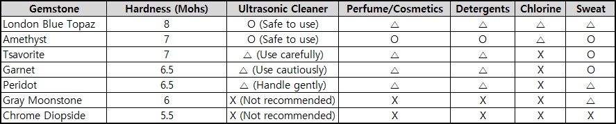 - If using an ultrasonic cleaner, check the gemstone's compatibility to ensure safety.