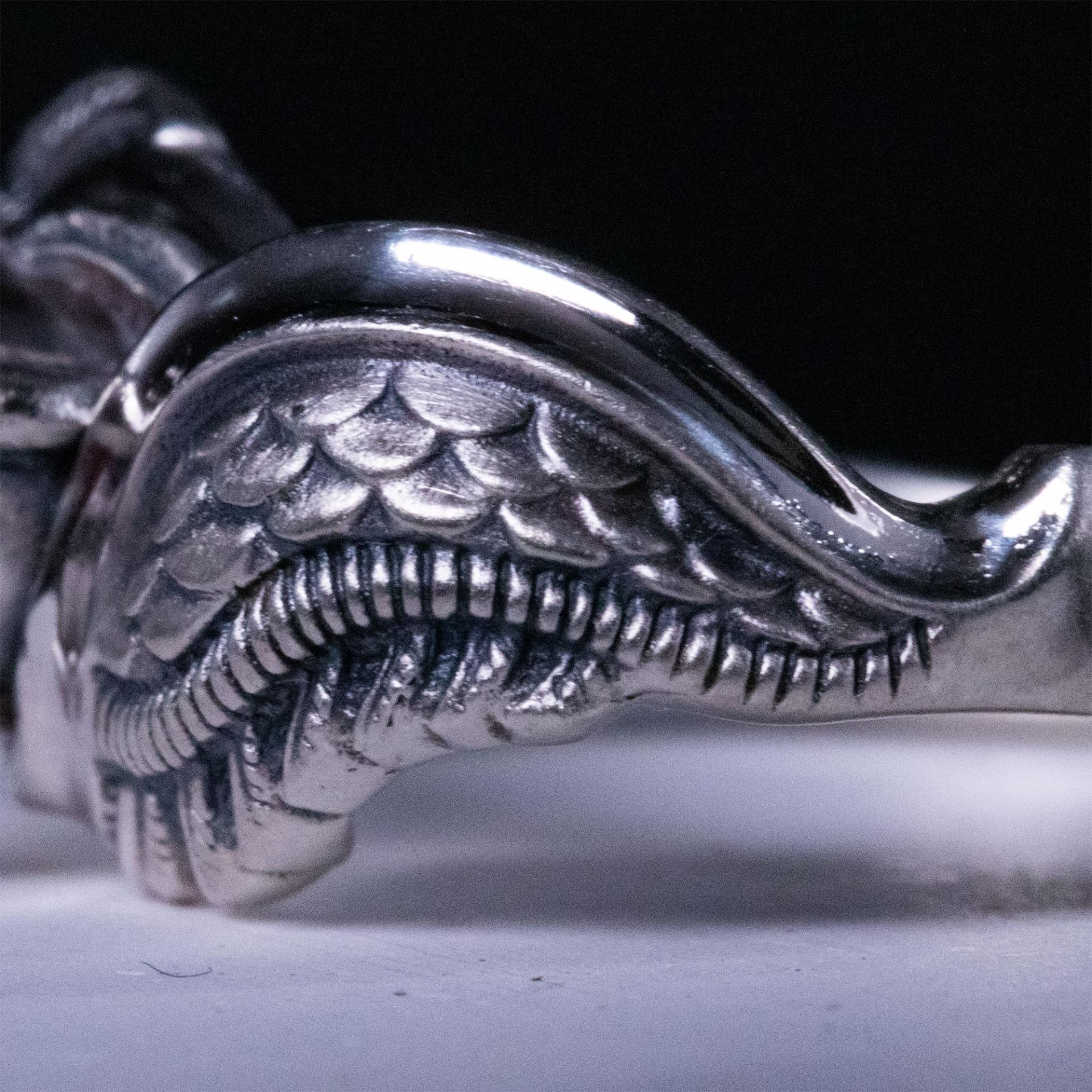 The Vermilion Bird, a sacred guardian of the South, is a mythical phoenix ablaze in brilliant red flames. This ring captures the essence of its flowing wings, symbolizing resilience and grace in motion.