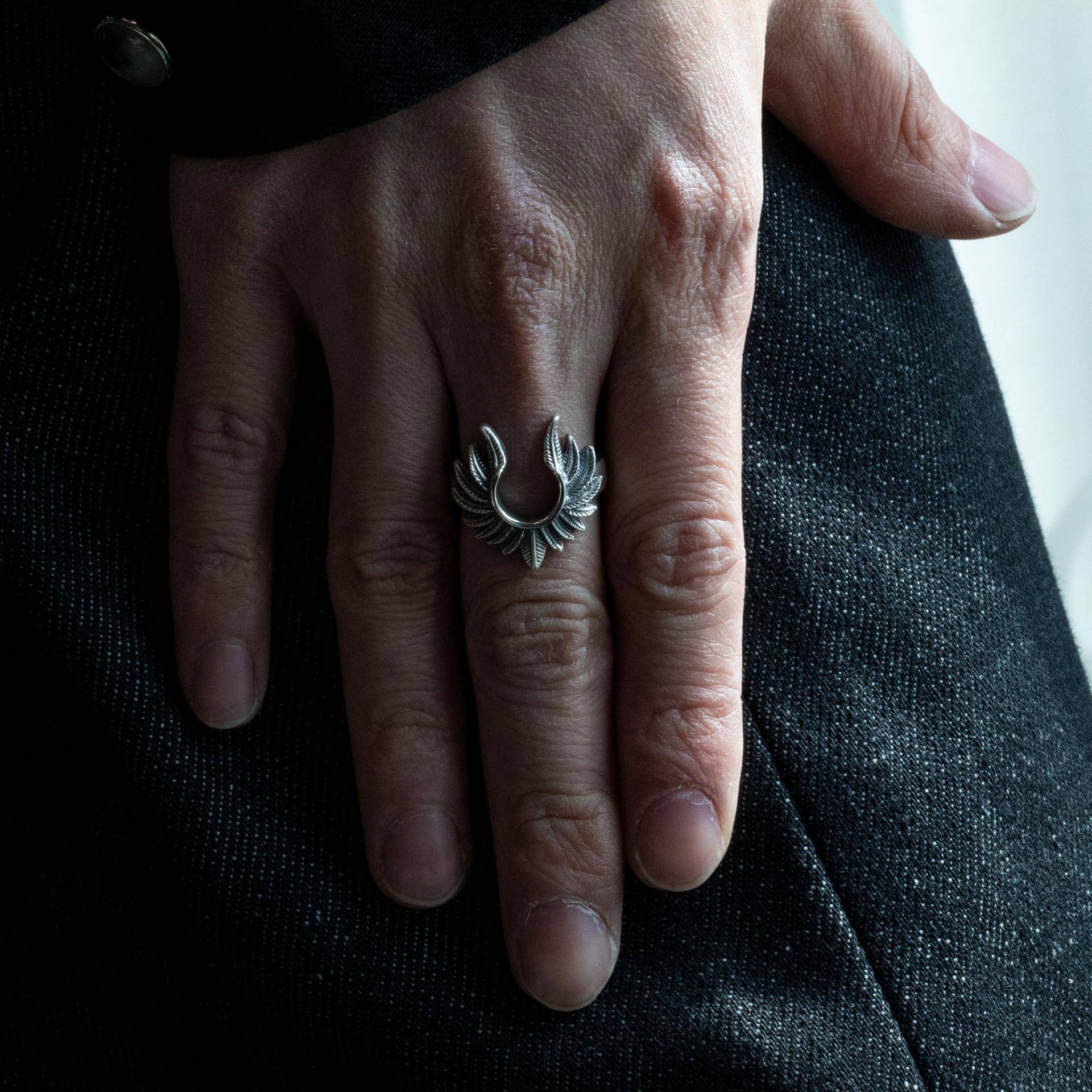 As the third wing-inspired ring in this collection, Wing 3 reinterprets the shape of a horseshoe, a well-known symbol of luck, into a beautifully detailed wing design.