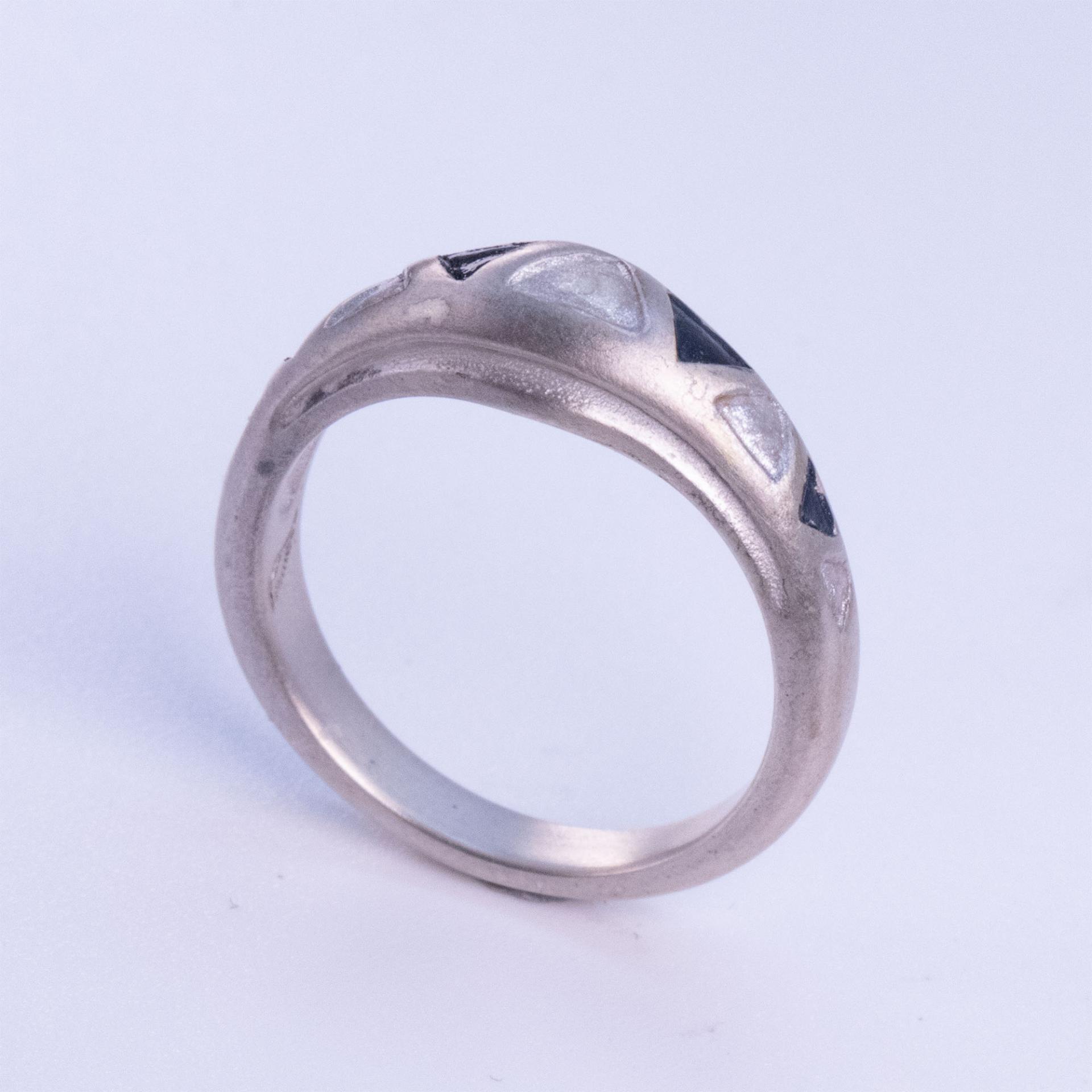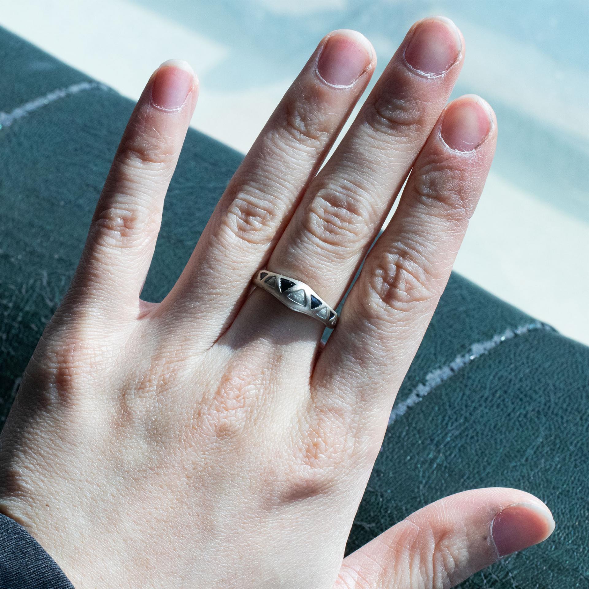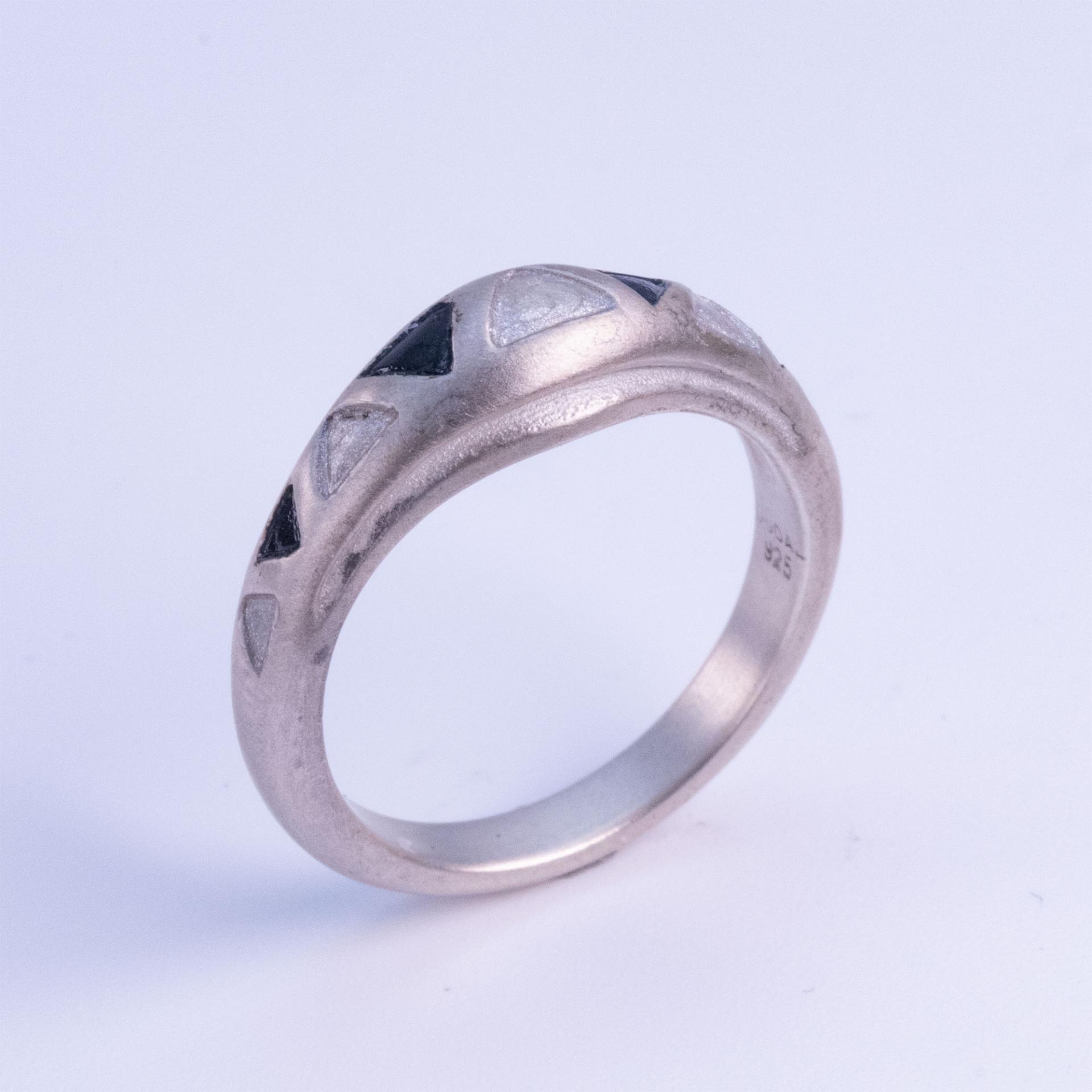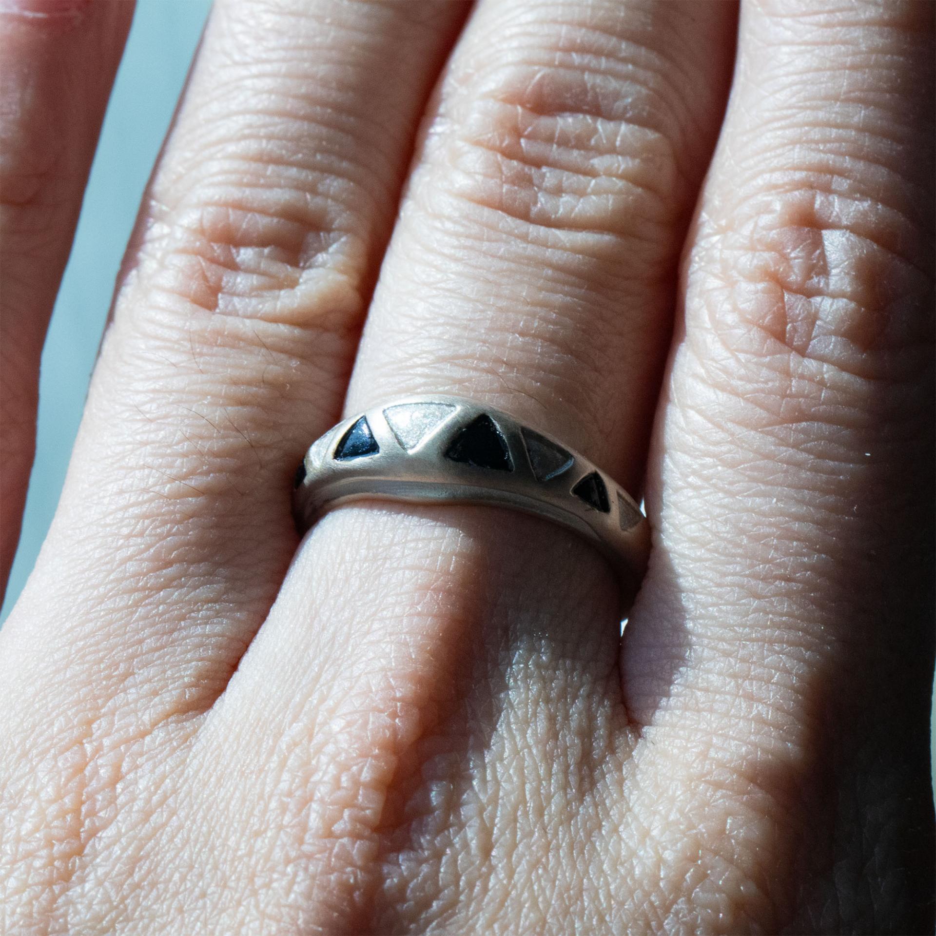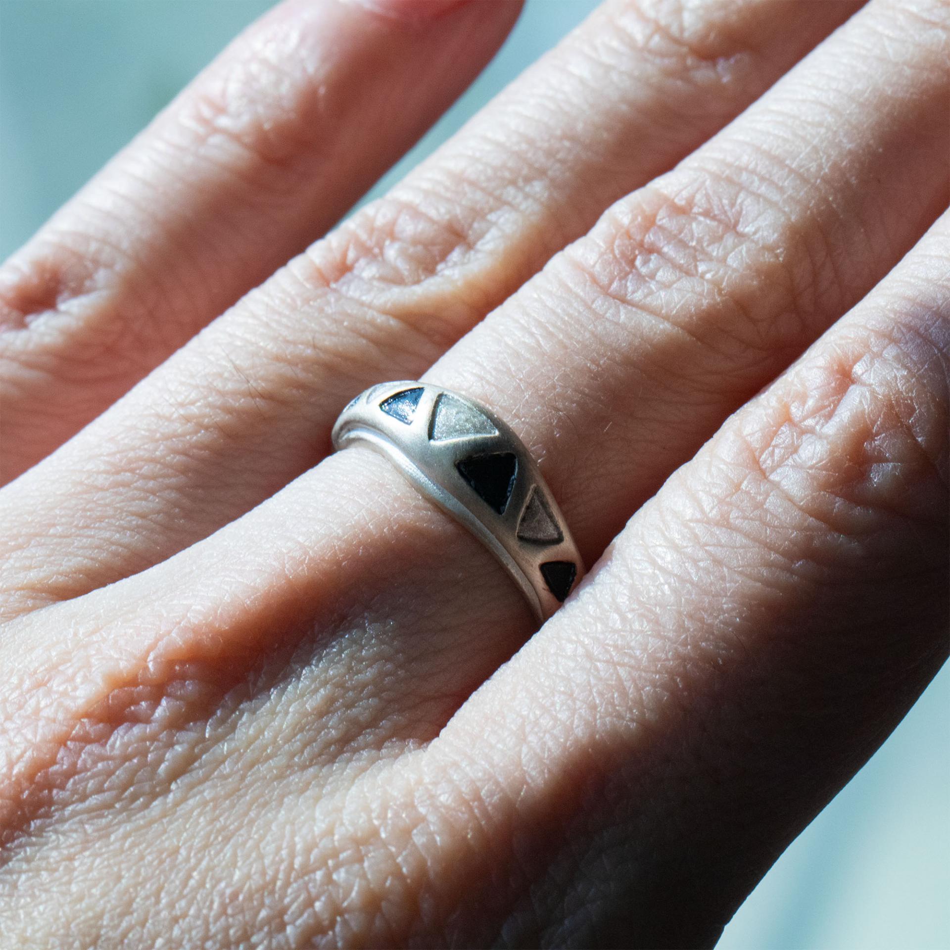 This ring is inspired by the artwork of Gustav Klimt. His signature triangular patterns and color combinations have been reinterpreted with a modern touch, carefully arranged and refined in a harmonious design.