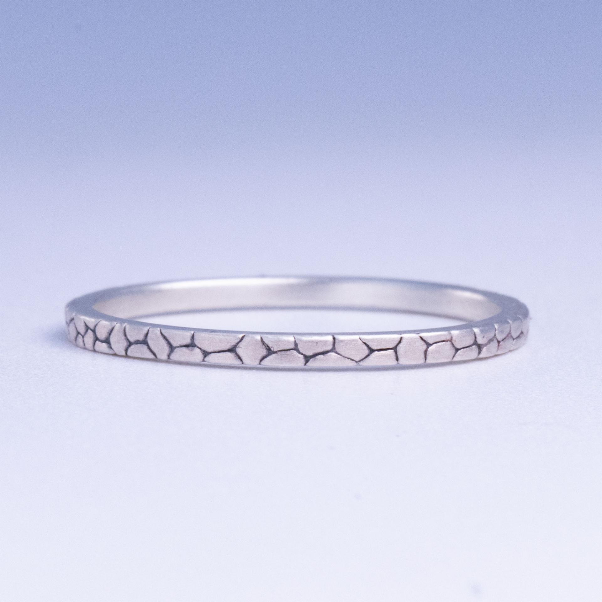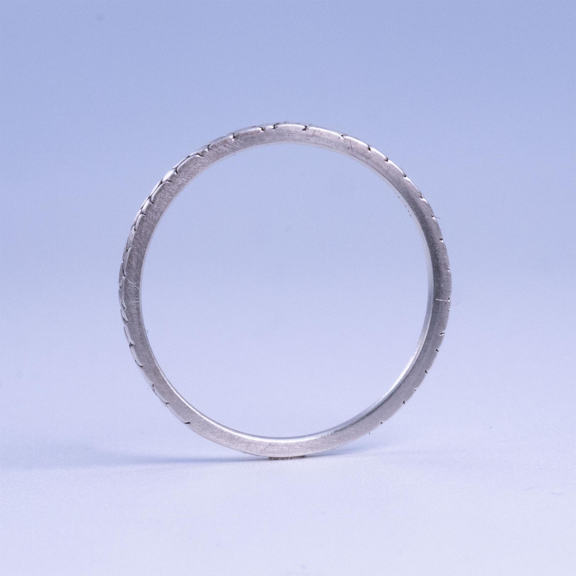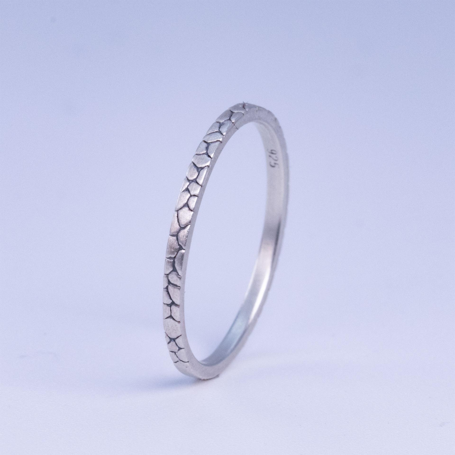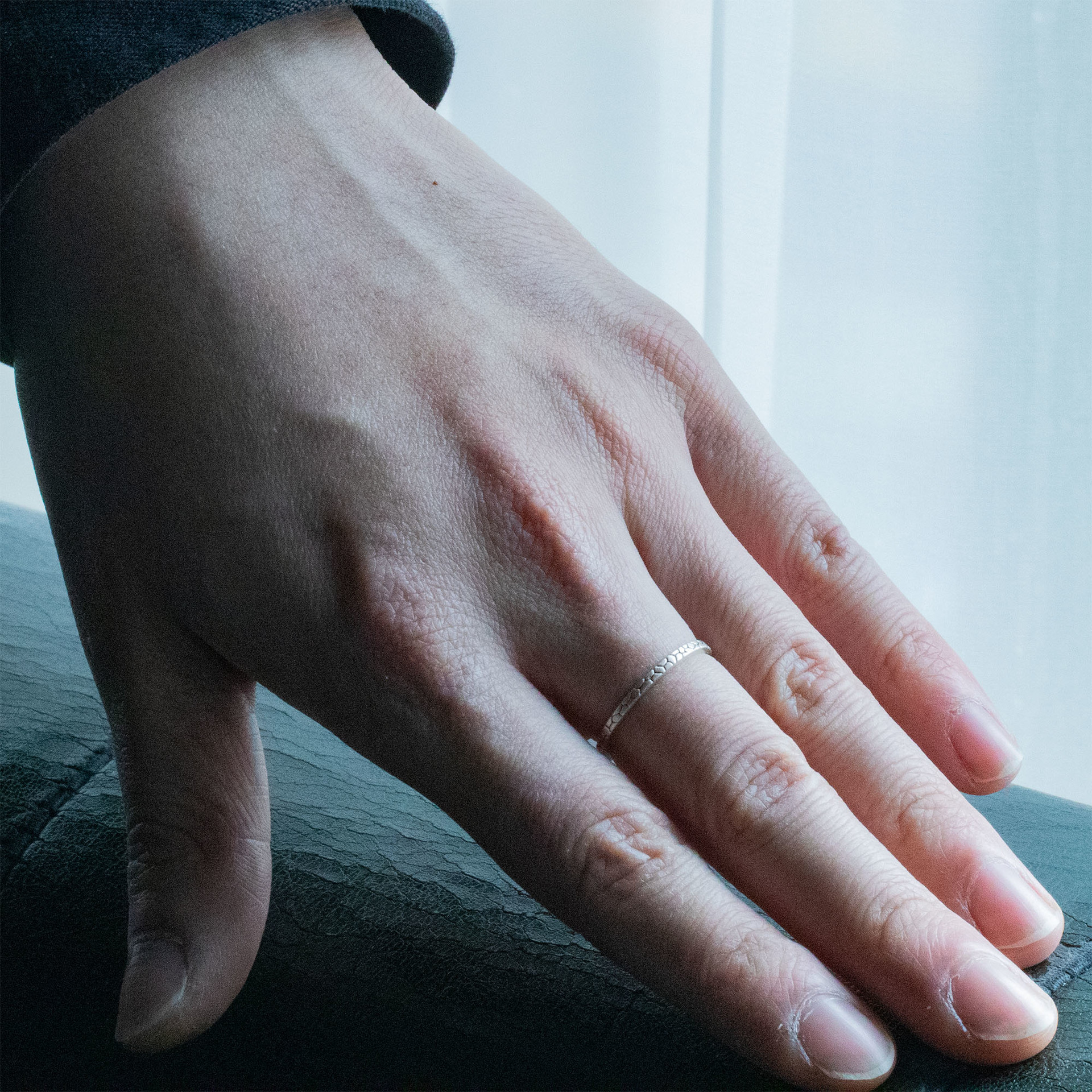 The Scale SS ring features a finely engraved scale pattern in a delicate, slim band design. Unlike bold statement rings, this piece is crafted to be lightweight and refined, making it easy to wear in everyday life without feeling overwhelming.