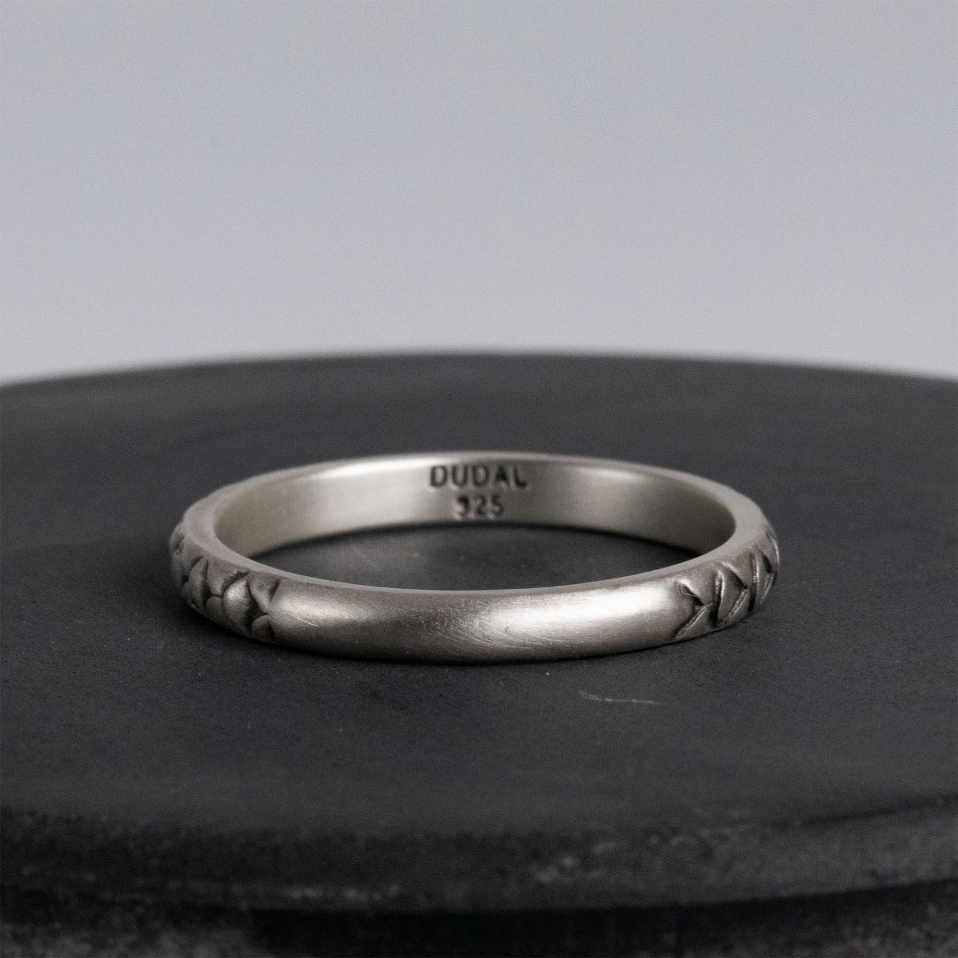 While it shares the same motif as previous scale rings, its thinner profile allows it to rest lightly on the finger with refined presence.