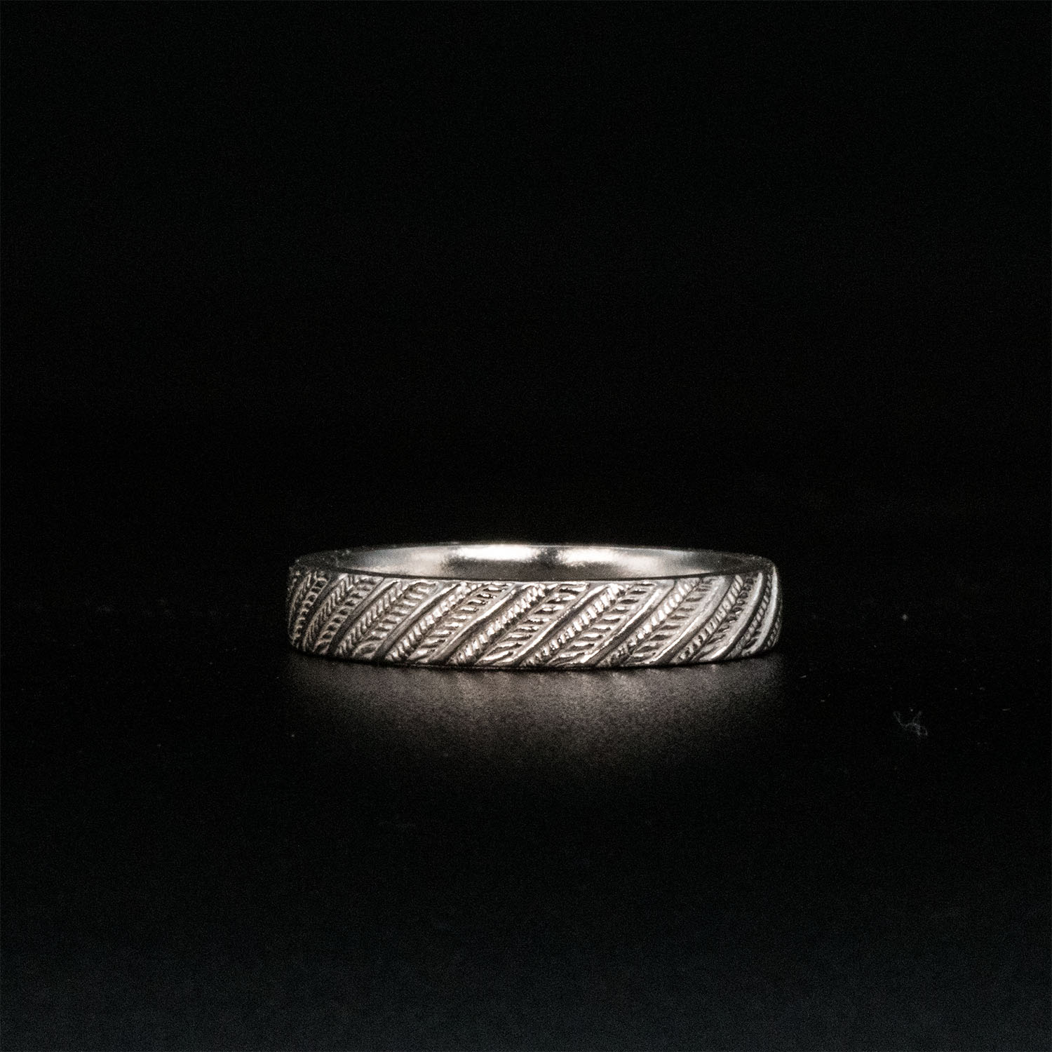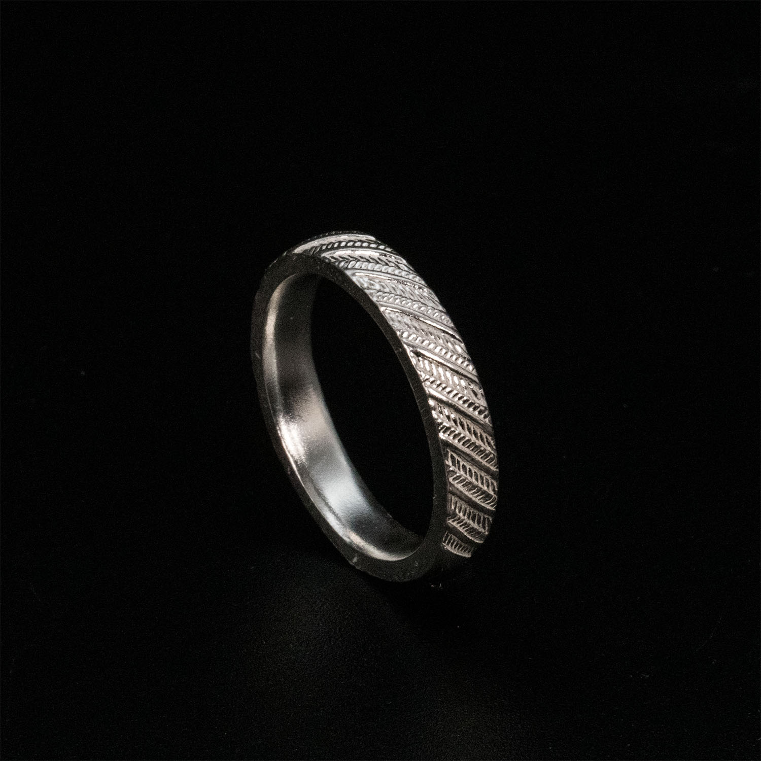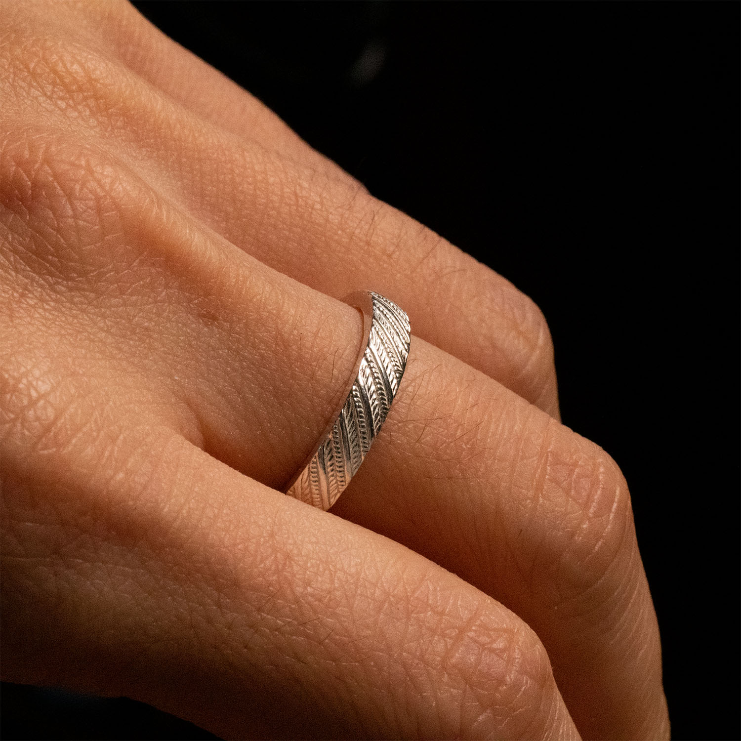 This ring is designed with a feather motif,